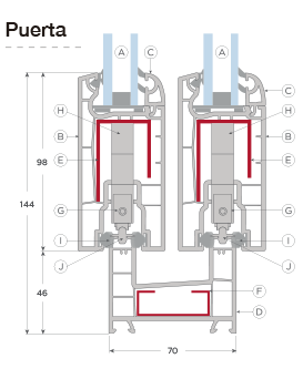 A:Termopanel.B:Hojapuerta70correderaSliding.