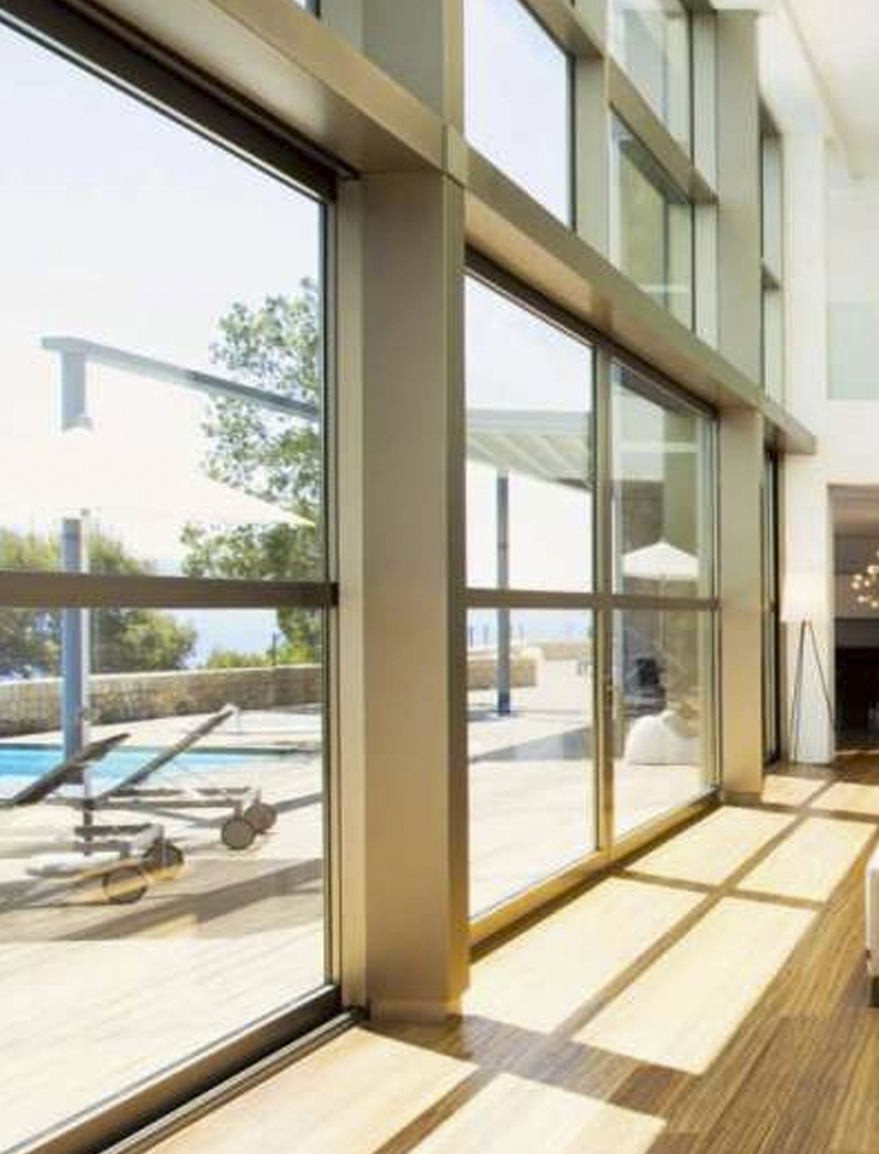 Sistema de corredera muy versátil que permite fabricar ventanas de corredera estándar y también permite hacer ventanas correderas de grandes dimensiones, gracias a la fortaleza de sus perfiles y refuerzos de acero galvanizado.